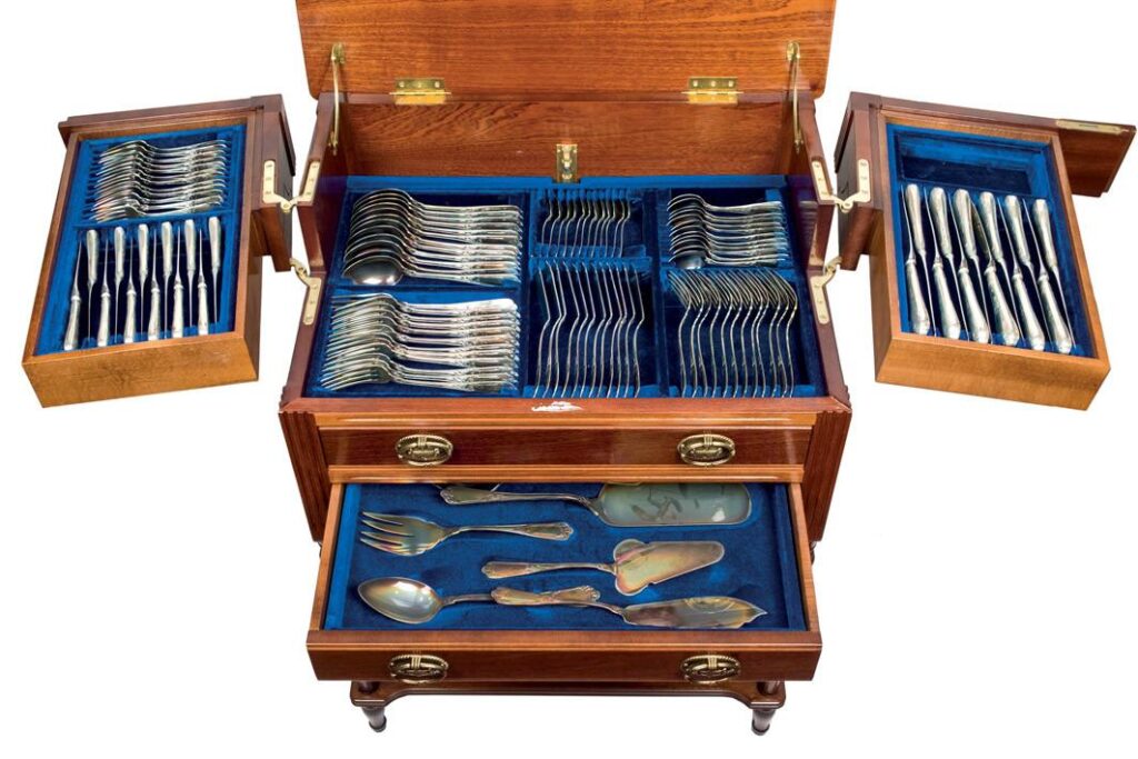 Una cubertería de plata Cruz de Malta completa puede venderse a un precio de entre 4.000 y 5.300 euros. Dependiendo de si se trata de el modelo de 116 piezas o de 115 piezas, y la presencia o no de su mueble a juego.
